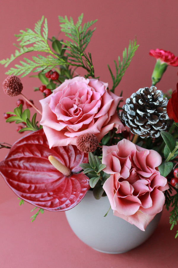 Named after some sweet little ladies in my life. Our vase arrangements are flower foam-free. Vase arrangements arrive boxed for protection with decorative tissue paper and care instructions attached. A complimentary card is included with every order.
